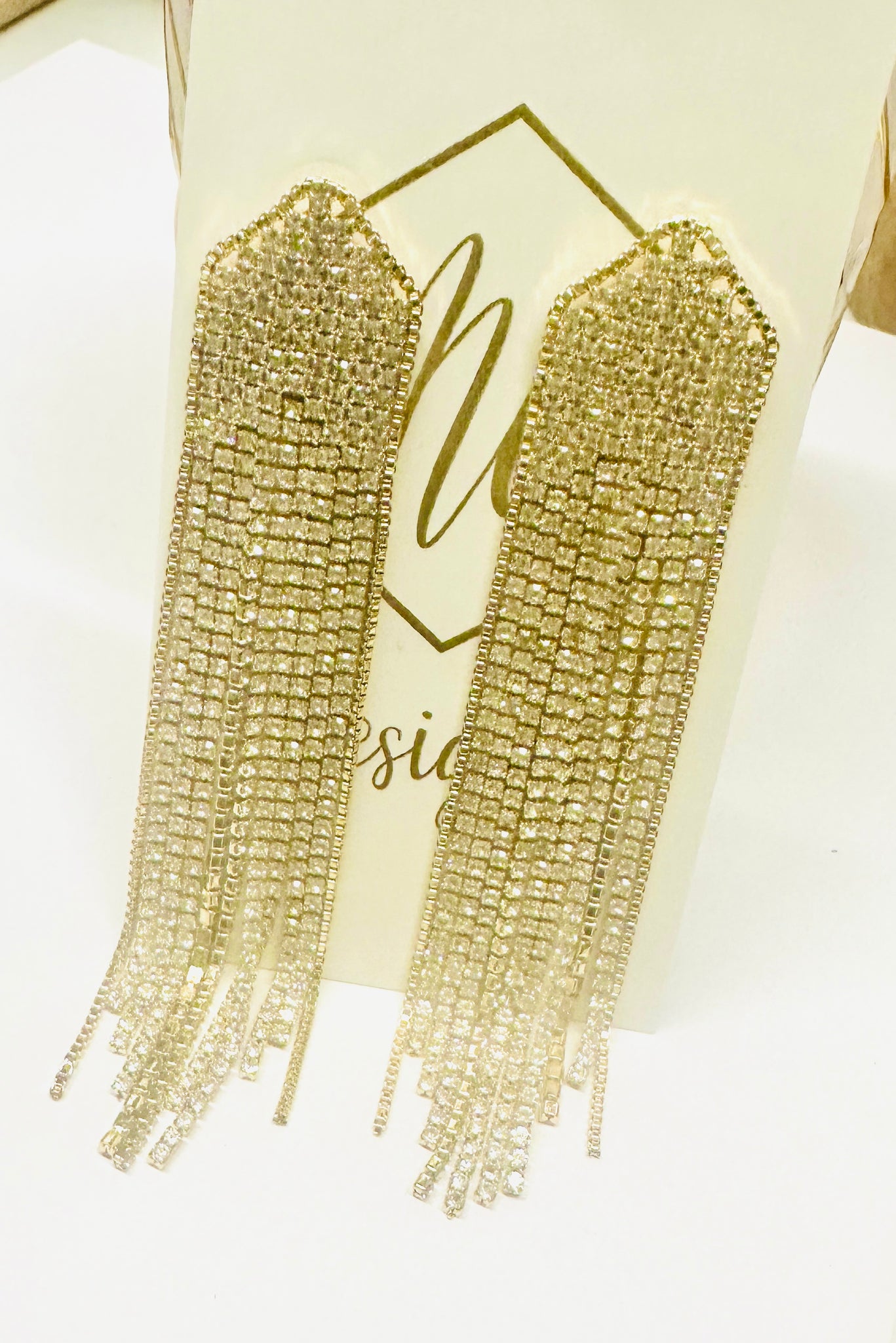 Gold Rhinestone Fringe Earrings Statement Earrings