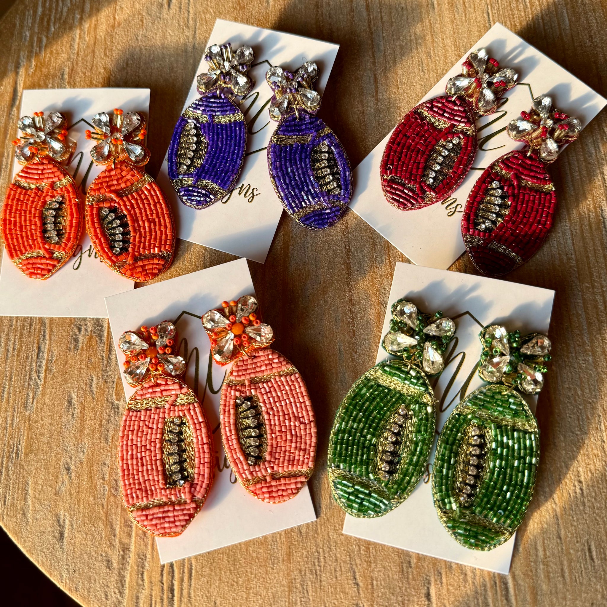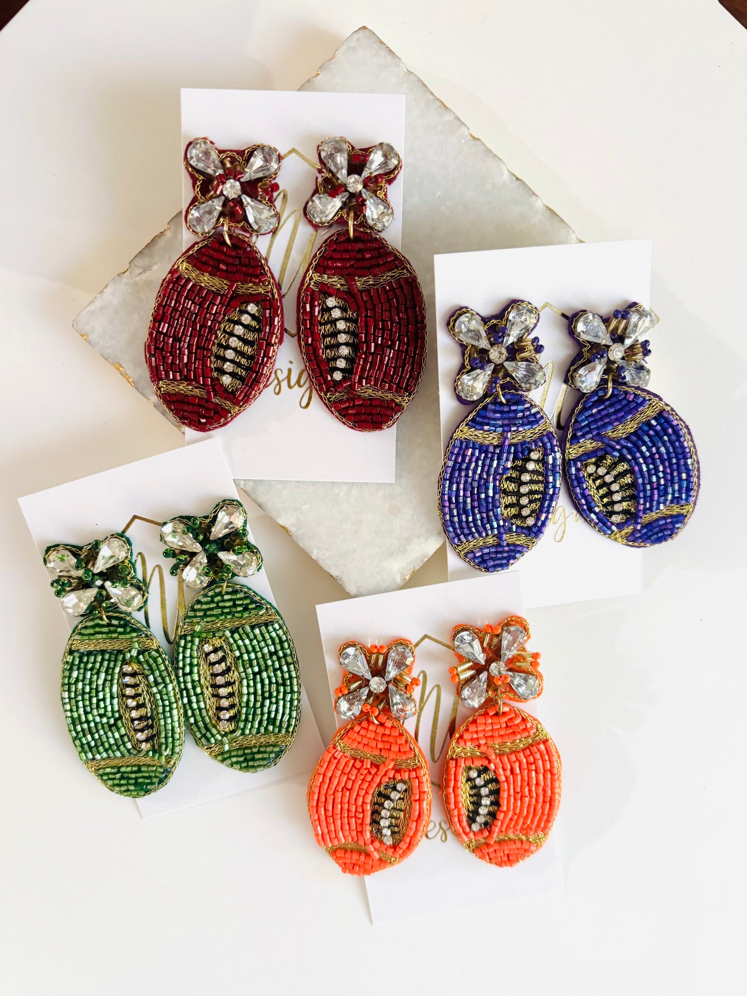 GAME DAY HAS NEVER LOOKED THIS CUTE! You'll love our adorable Game Day Collection full of team pride! *Hand beaded football Earrings with jewels
