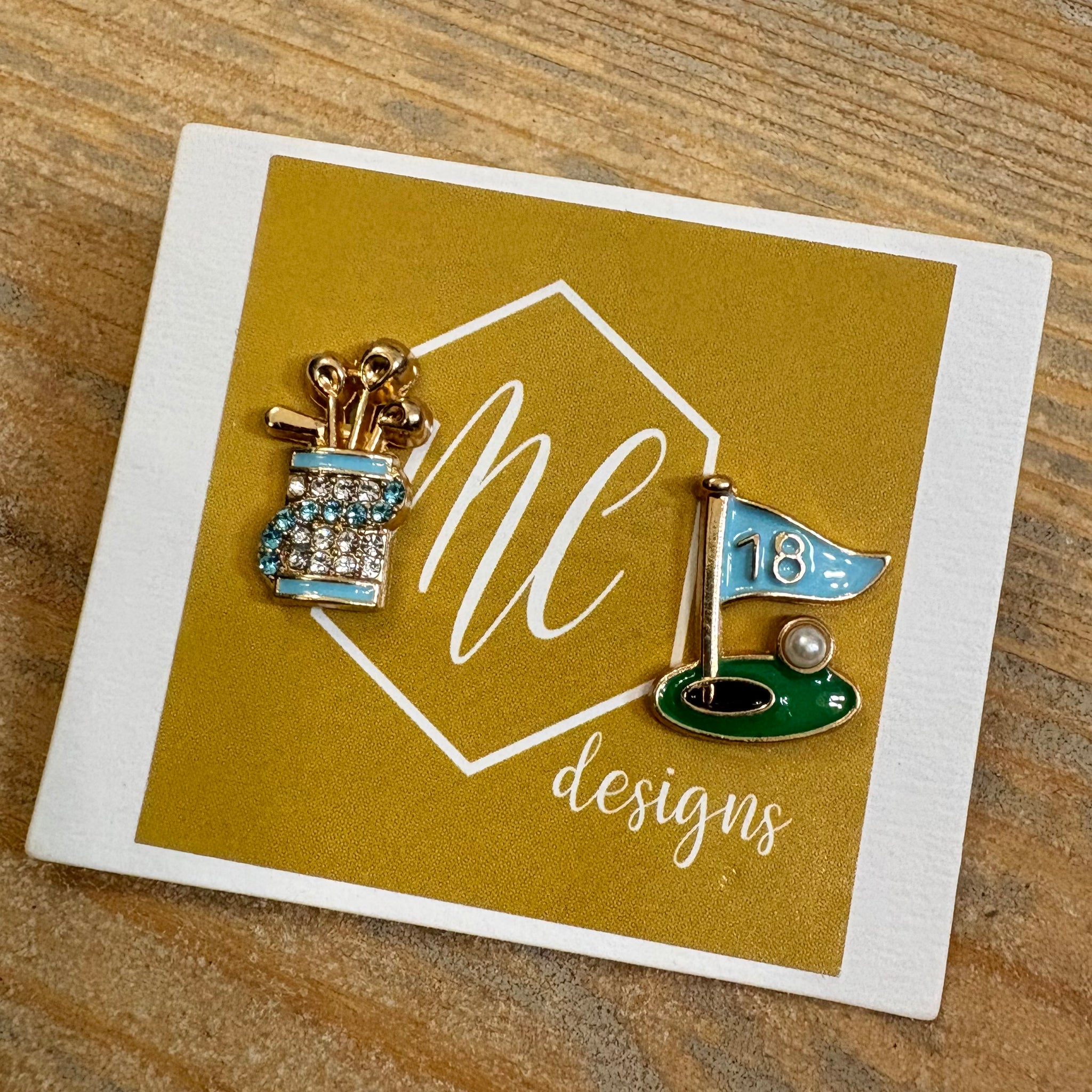 Discover the perfect accessory for the golf enthusiast with our 18th Hole Golf Studs. These elegant earrings feature a delicate design inspired by the iconic 18th hole on the golf course. Crafted with precision and attention to detail, they are a must-have for any golfer looking to add a touch of style to their wardrobe.