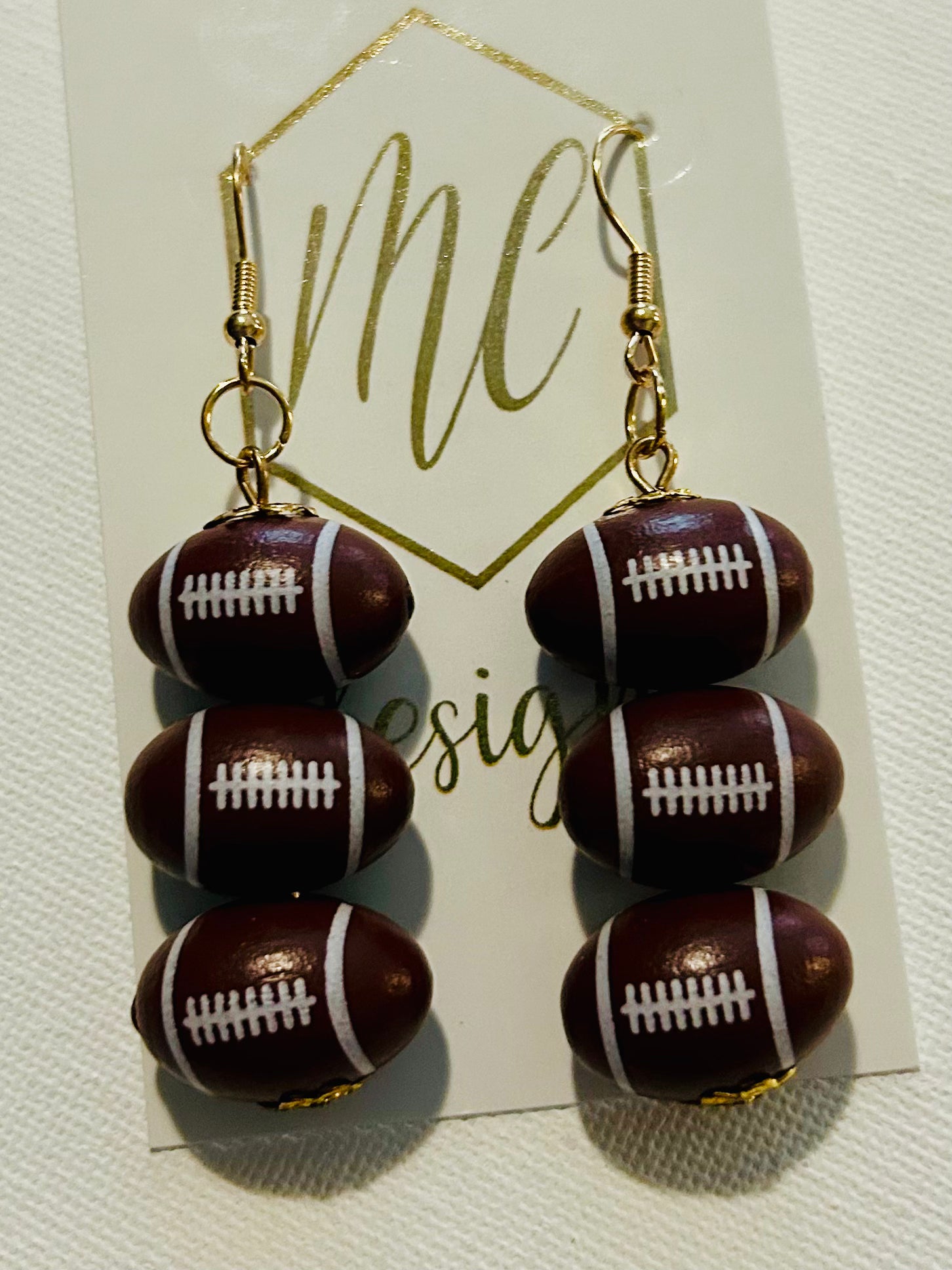 3-D Triple Sports Dangle Earrings Football Softball