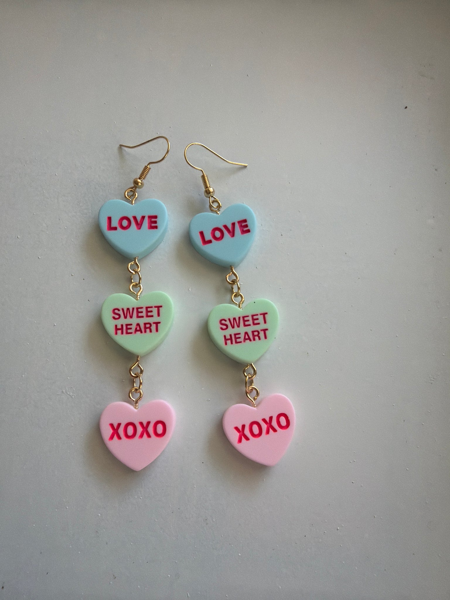 Acrylic Valentine Candy Heart Earrings Rectangle Shape and Heart Shaped