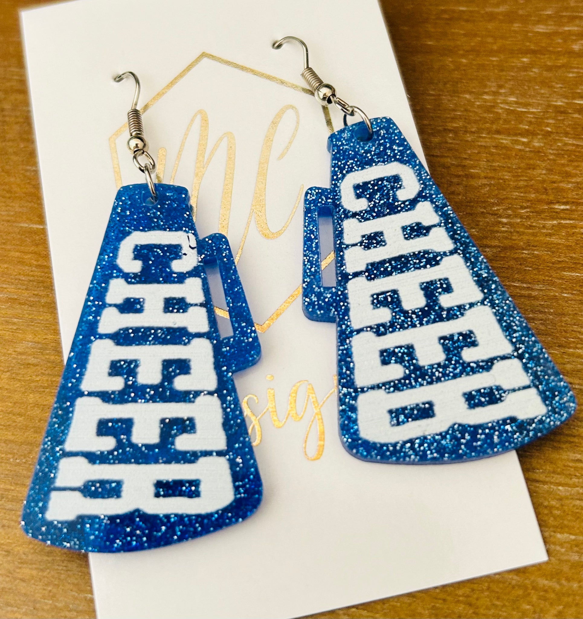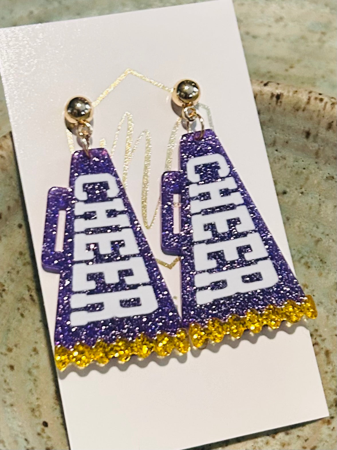 Cheer Megaphone Earrings Red Or Purple Glitter