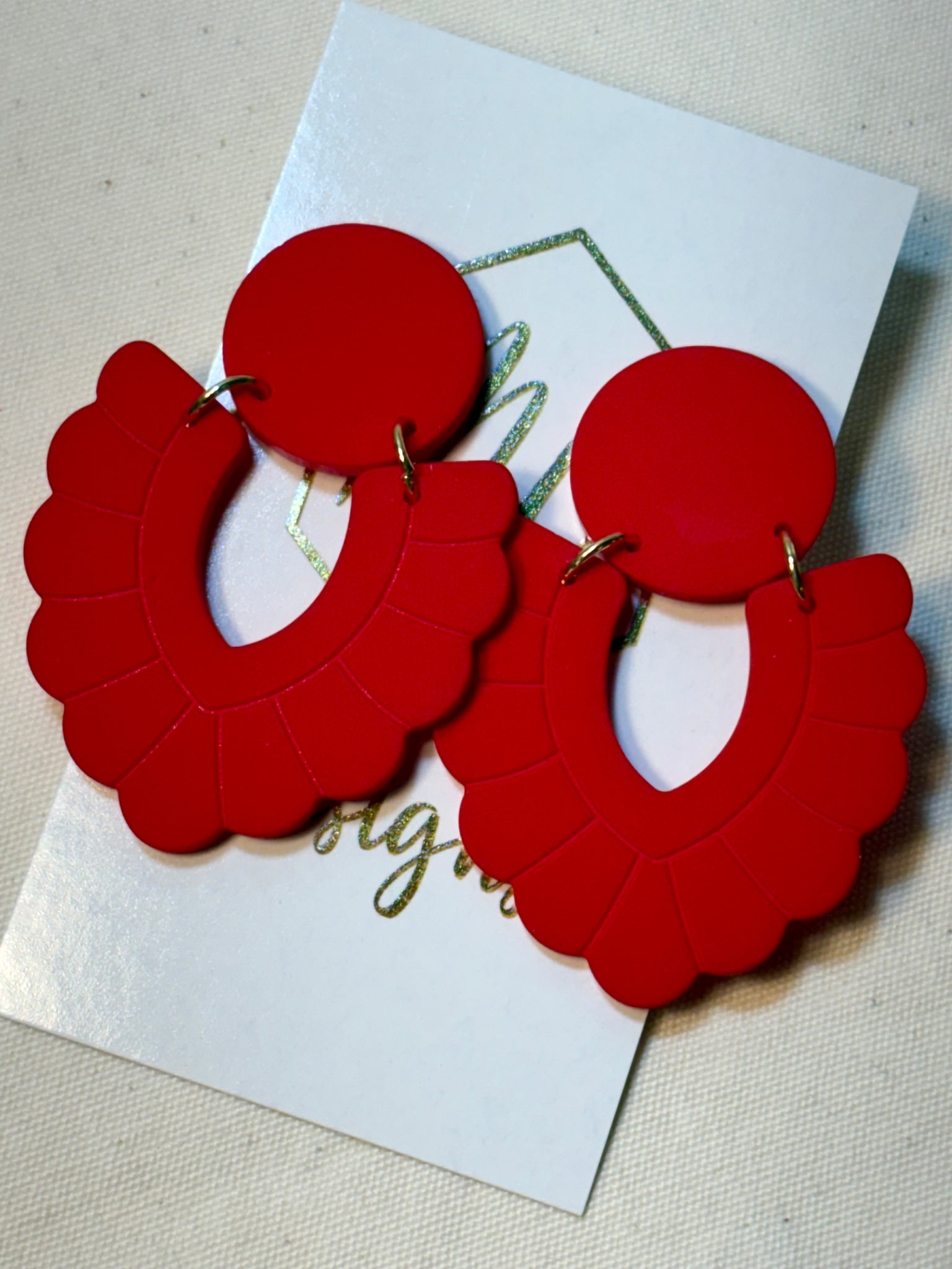 Handmade Fall Clay Scalloped Earrings in Maroon or Blue