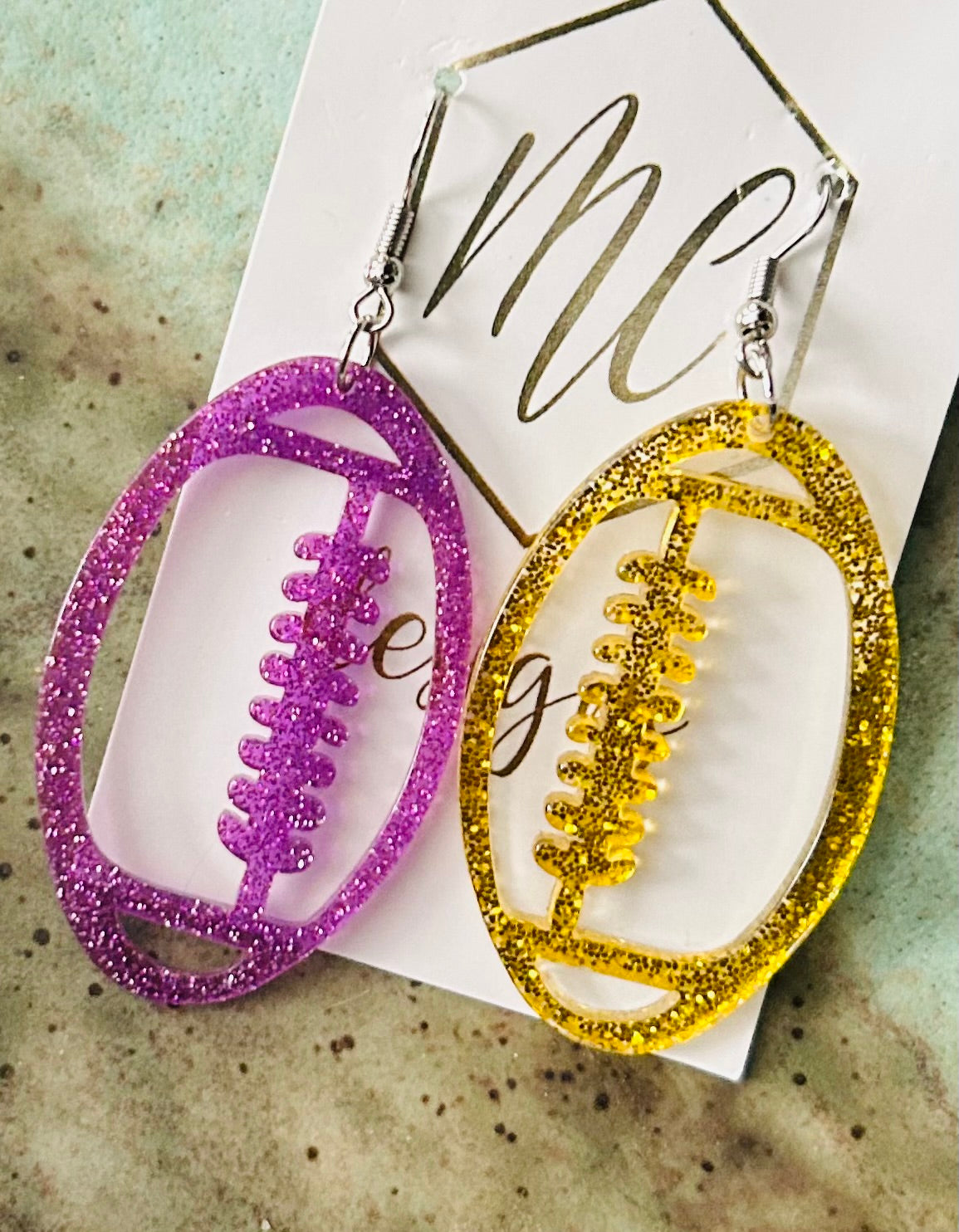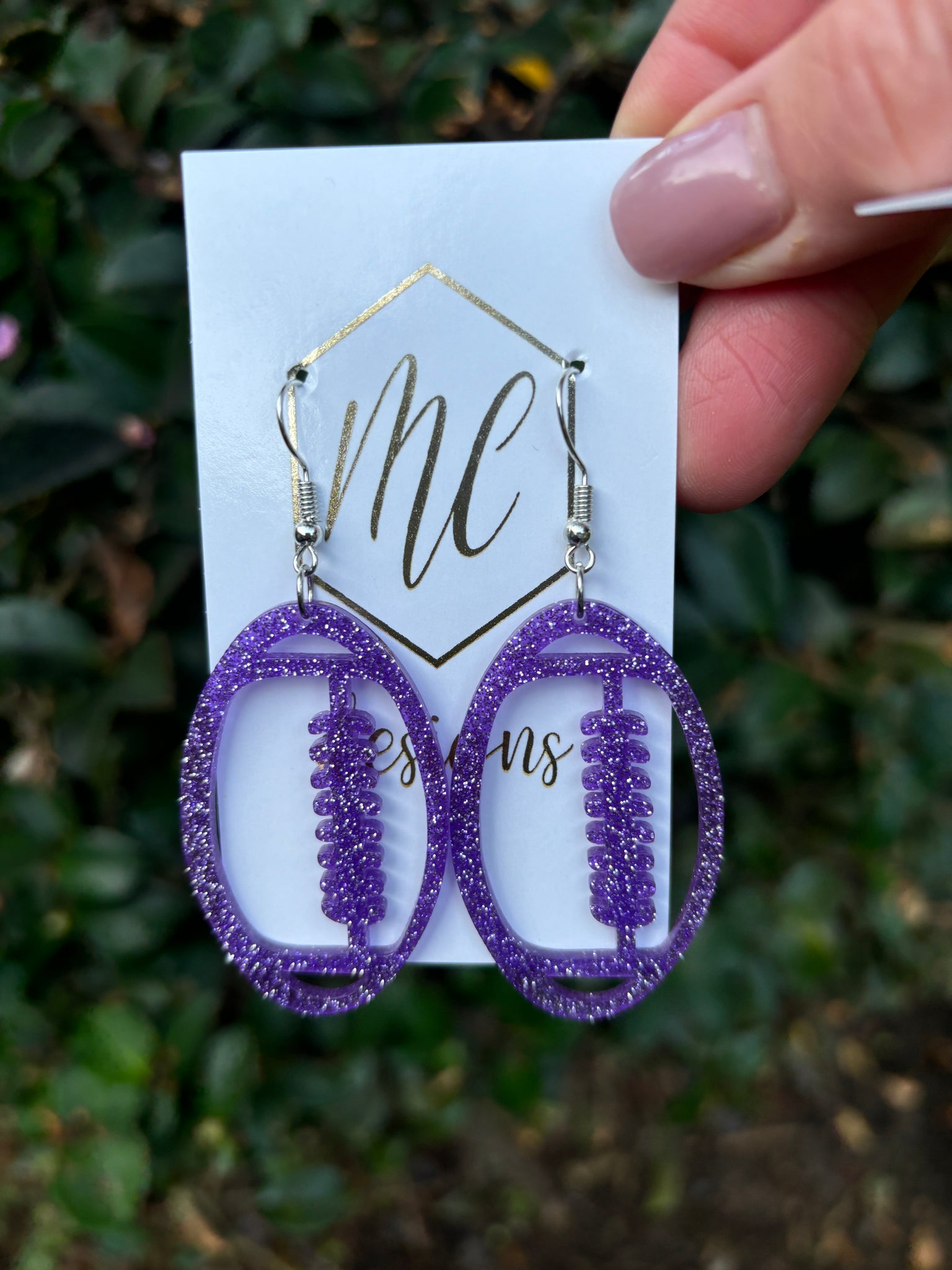 Purple and Gold Acrylic Glitter Acrylic Open Football Earrings