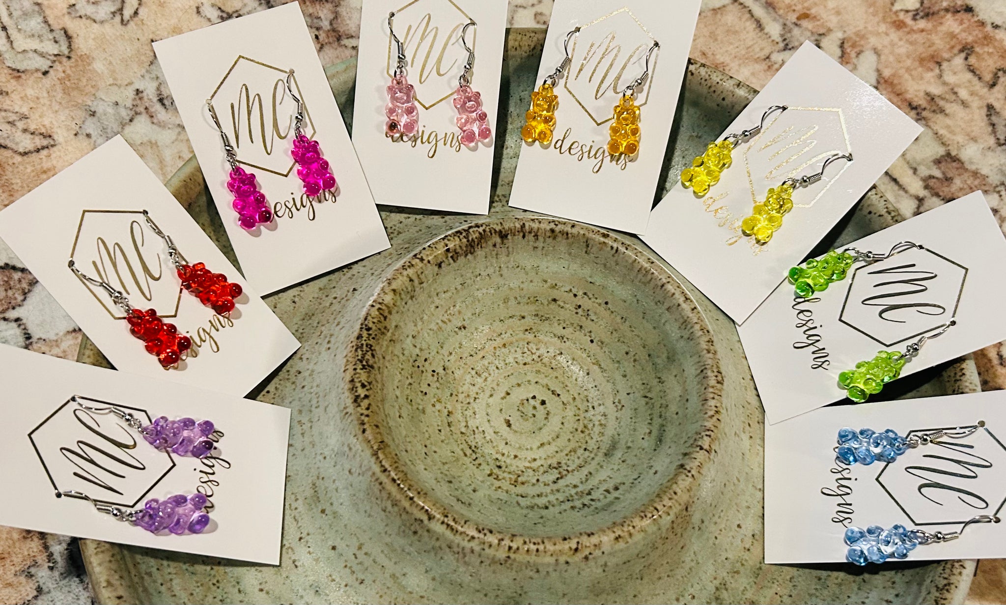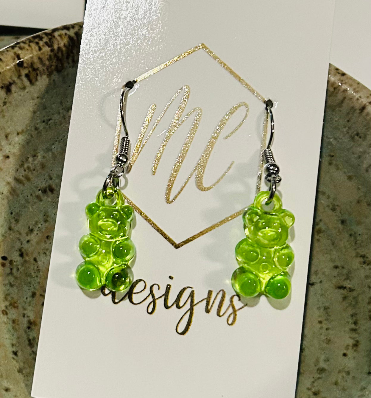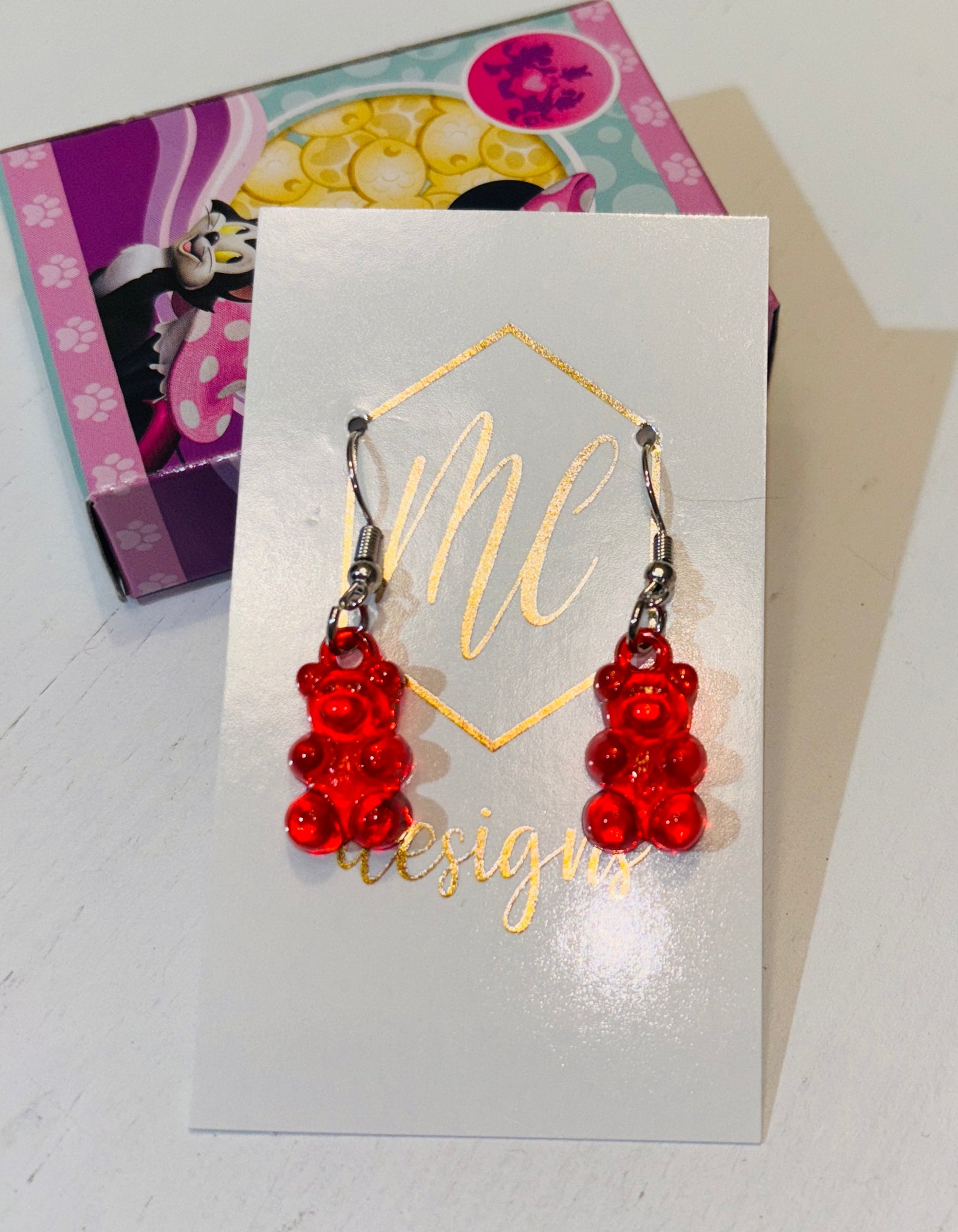 Handmade Resin Gummy Bear Dangle Earrings