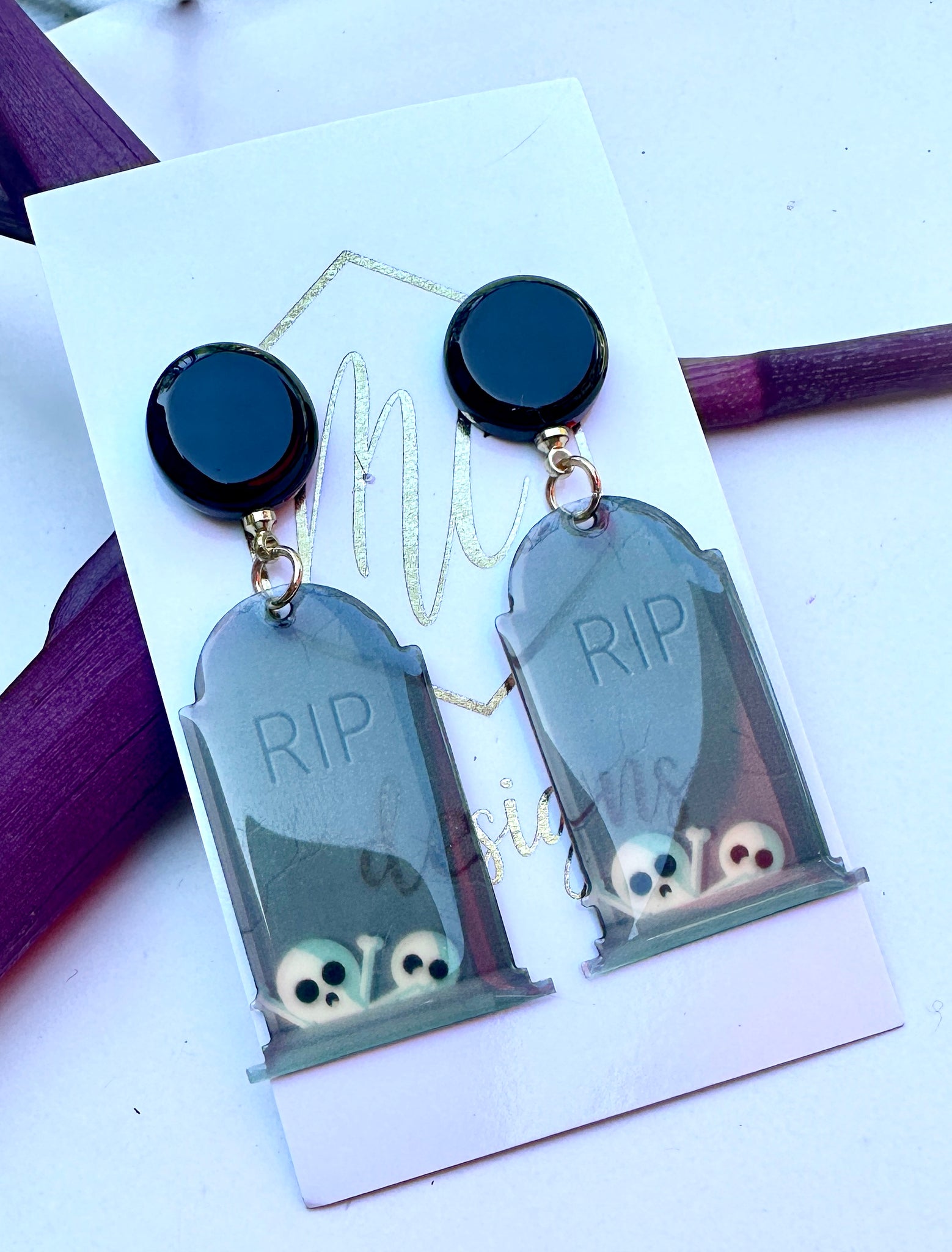 Halloween Coffin Tombstone Earrings