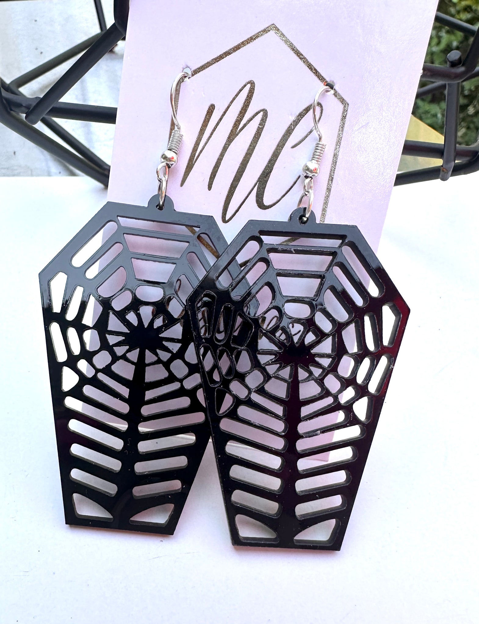 Halloween Coffin Casket Tombstone Spider Web Earrings