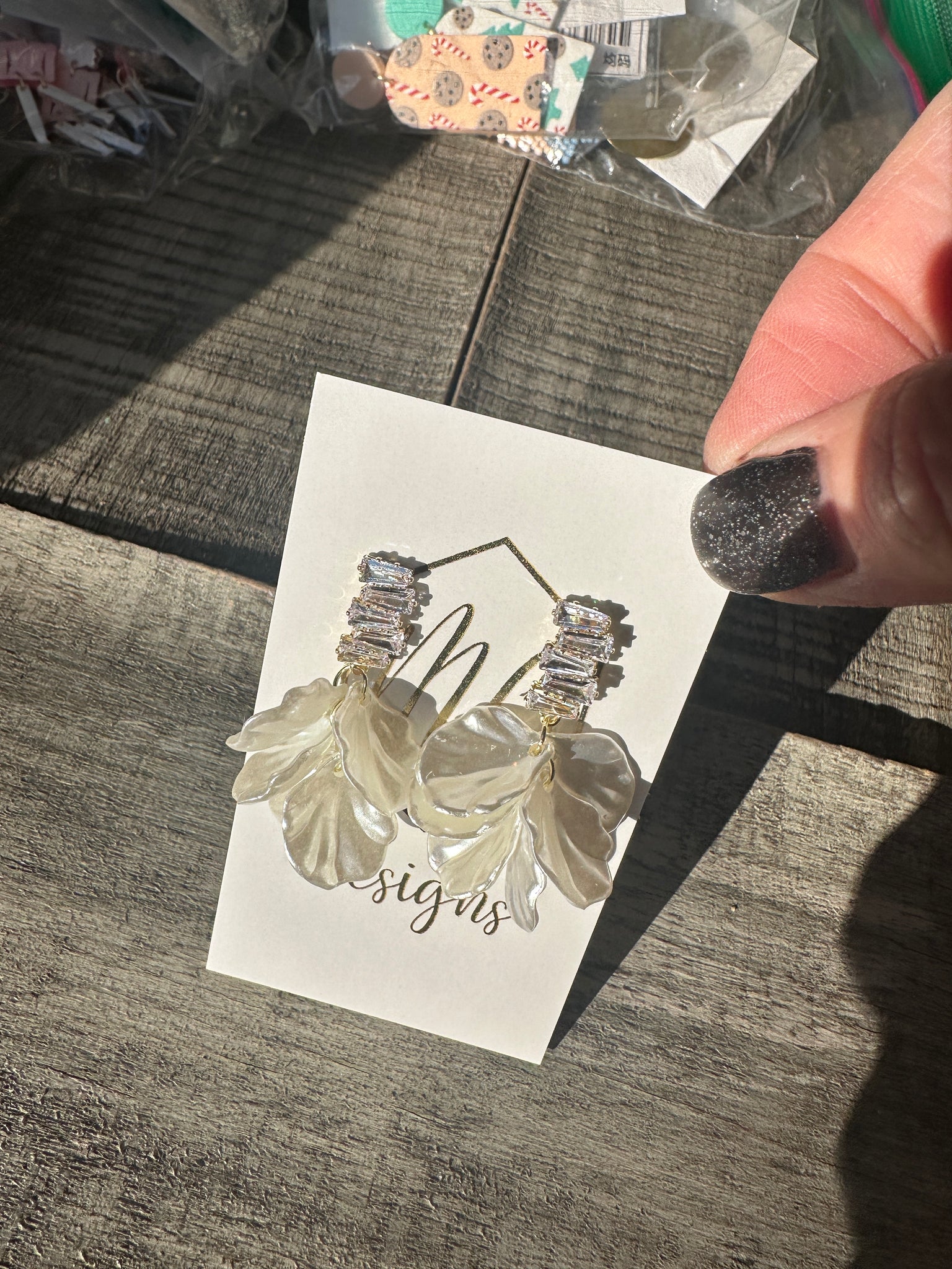 Jeweled Petal Pearlized Earrings Great for a Wedding