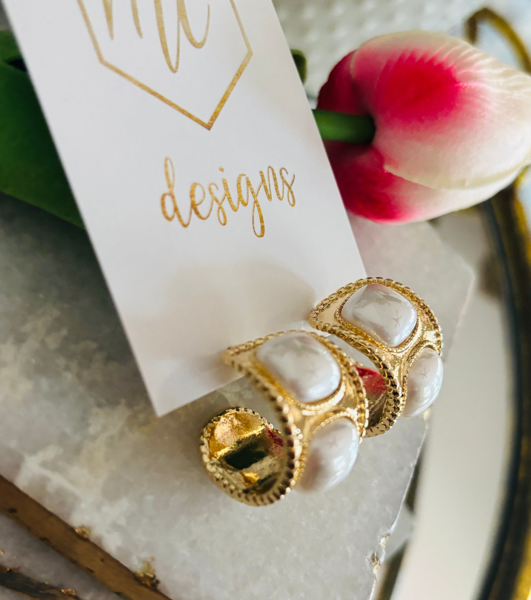 Large Pearl and Gold Hoops