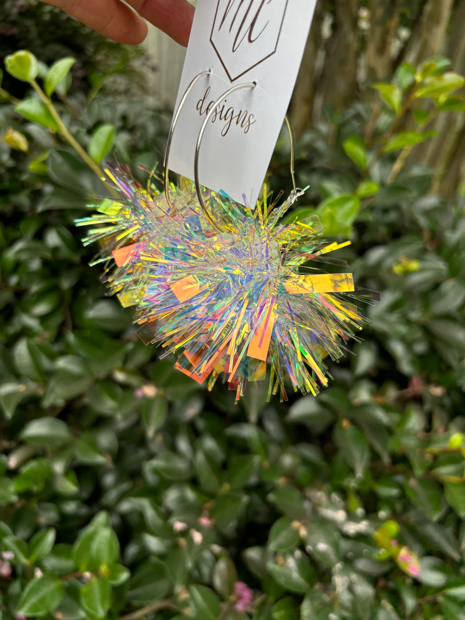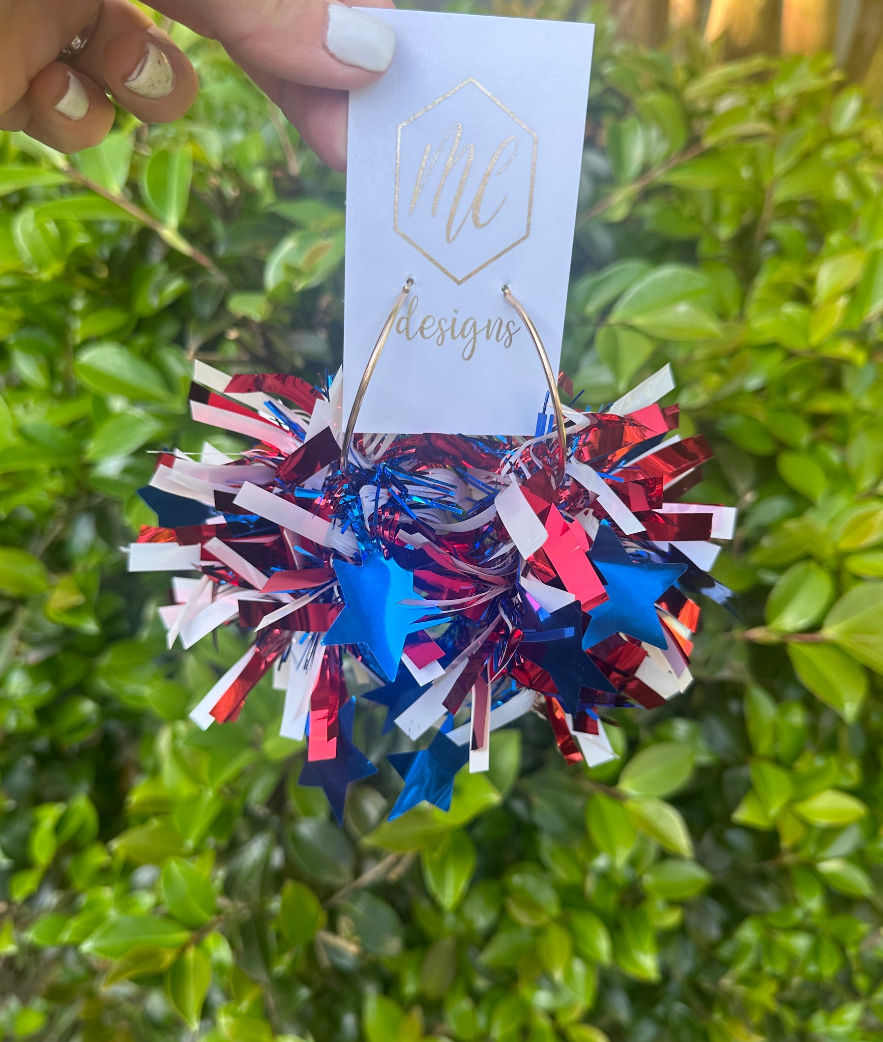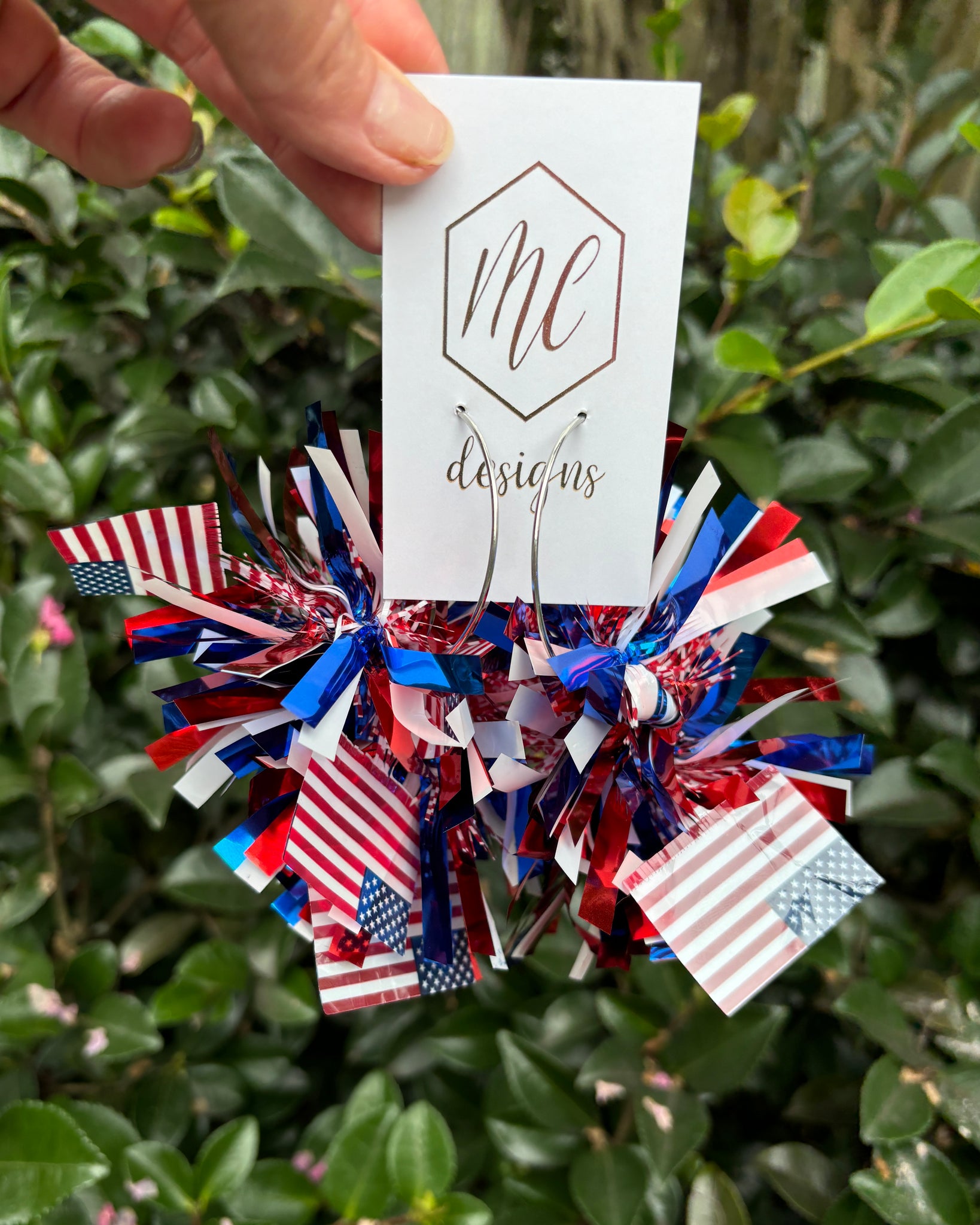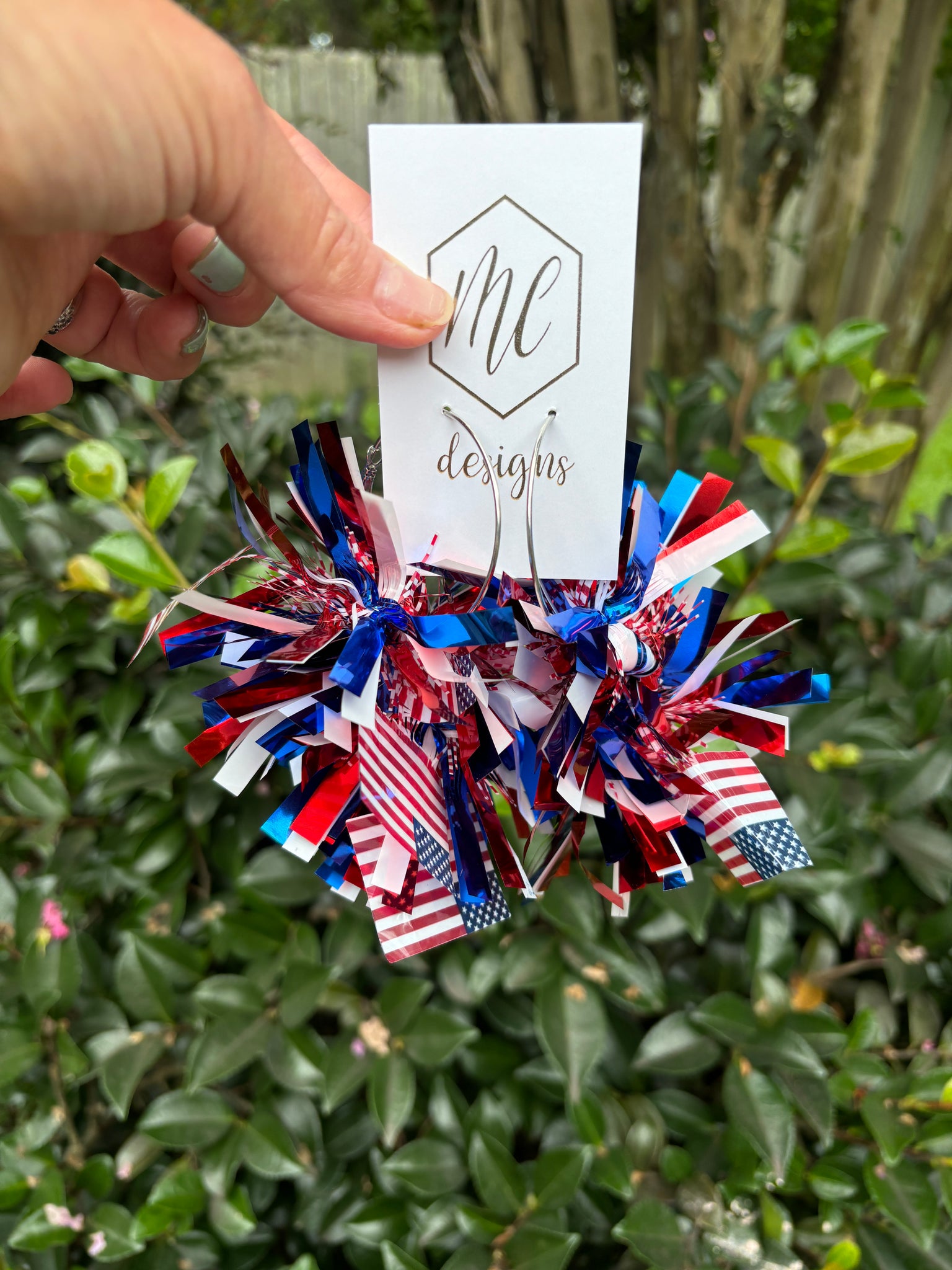 Large Pom Pom Statement Earrings Iridescent or Patriotic