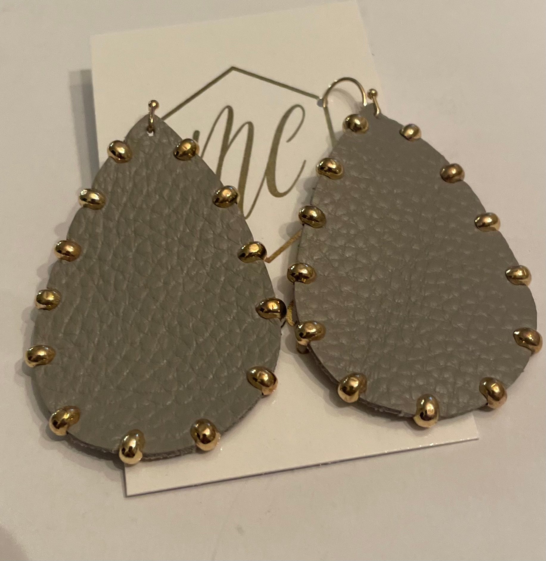Leather and Gold Teardrop Earrings