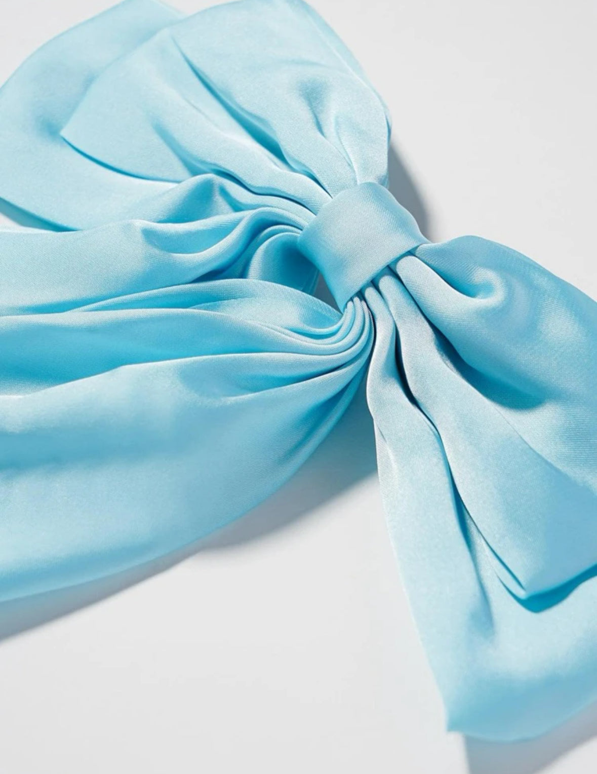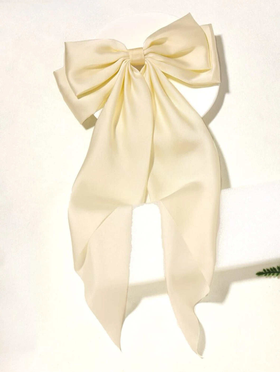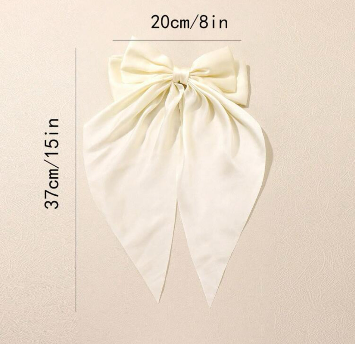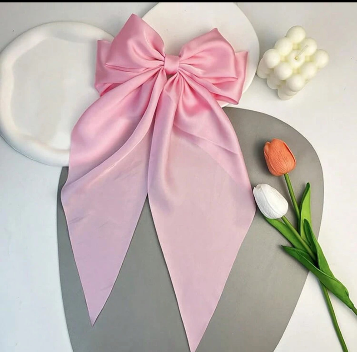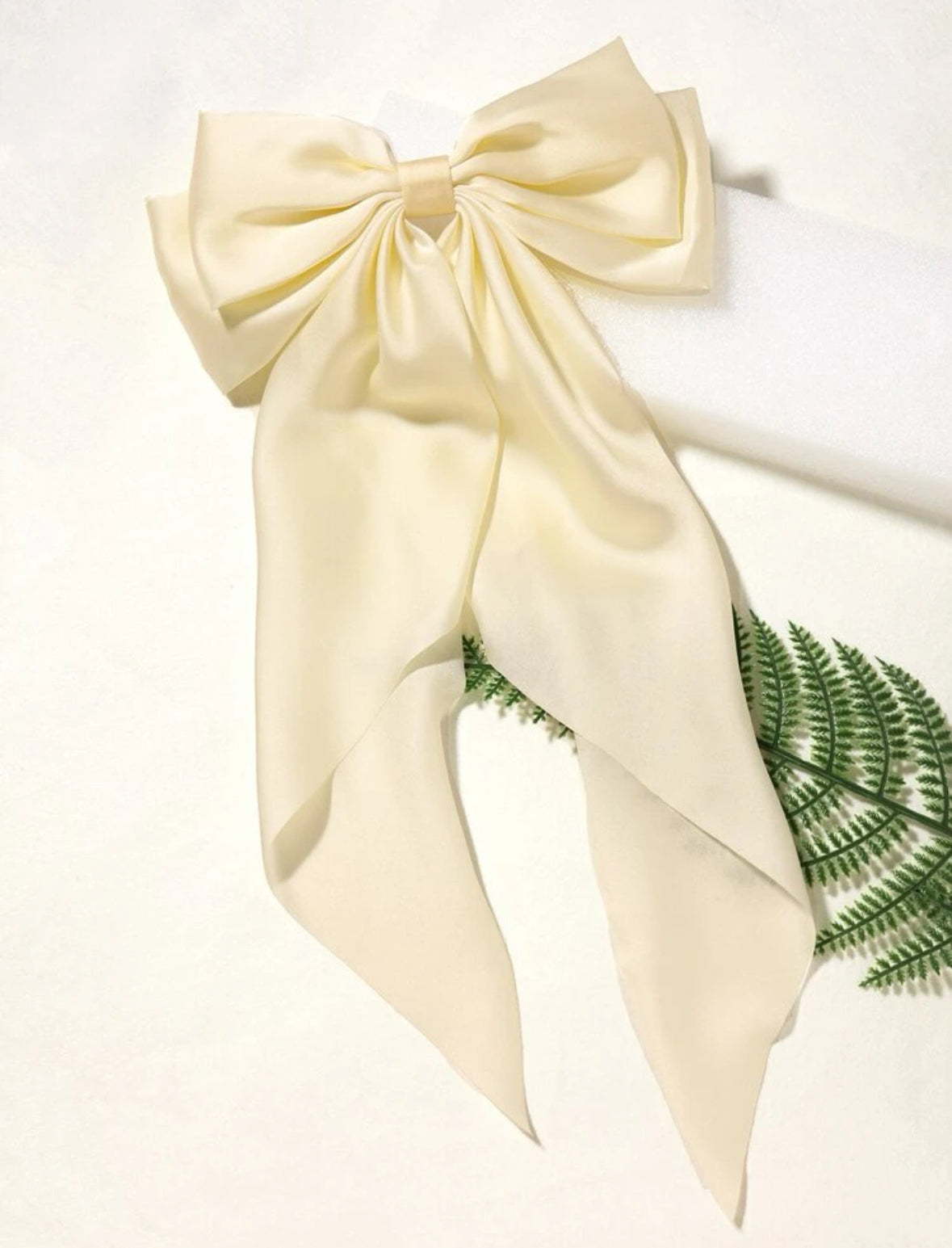 Big Sateen Hair Bow Barrette with Sweet Tails